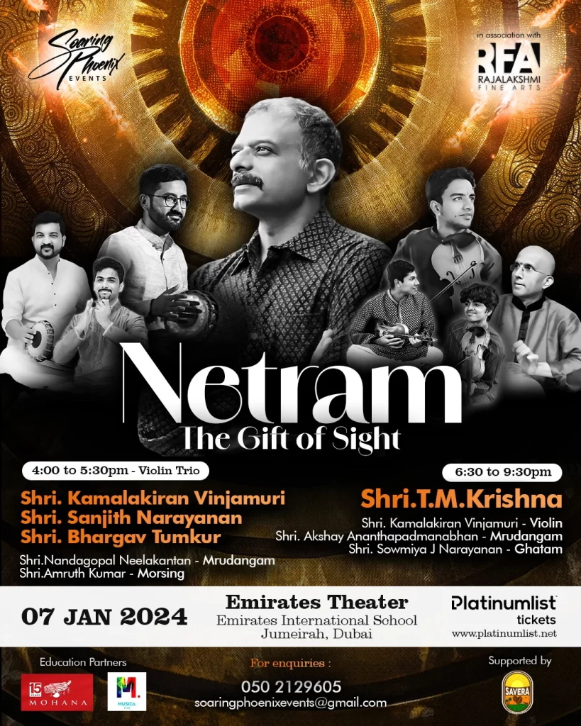 Soaring Phoenix events in association with Rajalakshmi Fine arts presented "Netram" - an evening of pristine Indian Classical music. The event featured two concerts on the 7th of January 2024